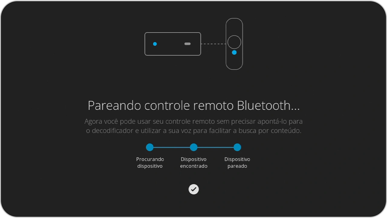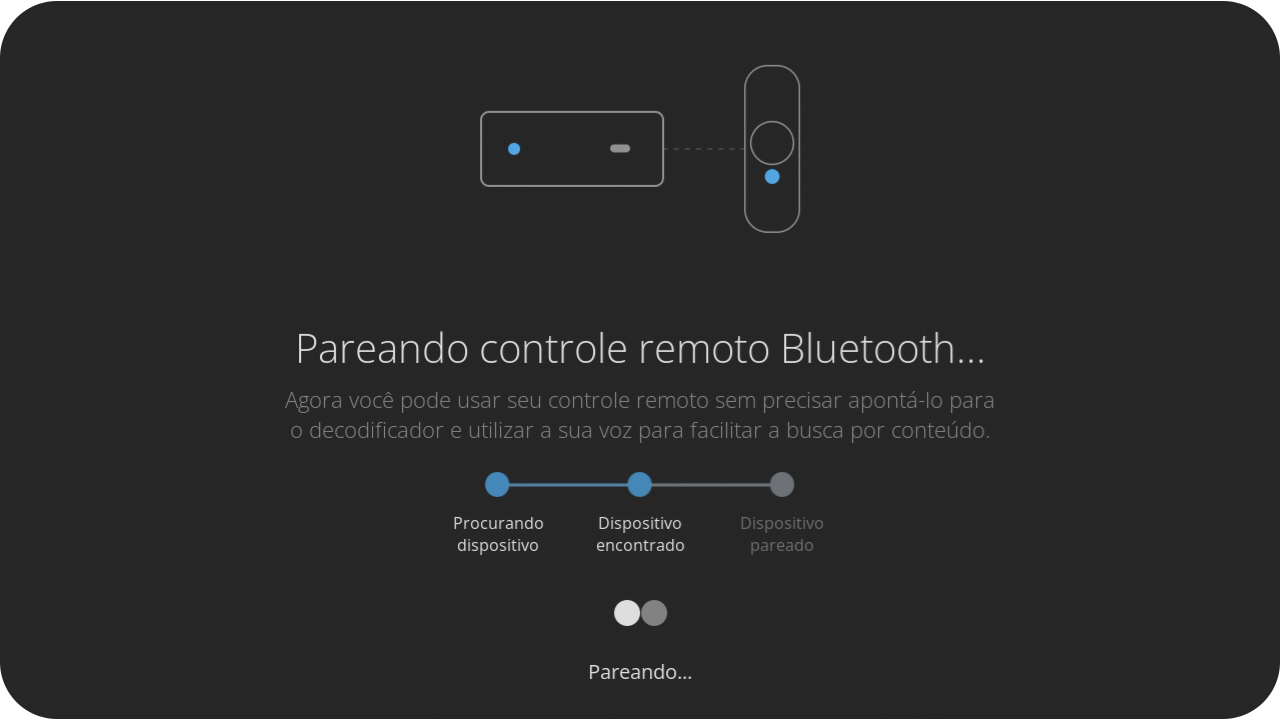 As informações para pareamento serão exibidas na tela da sua TV. Basta aguardar o processo ser finalizado de forma automática.